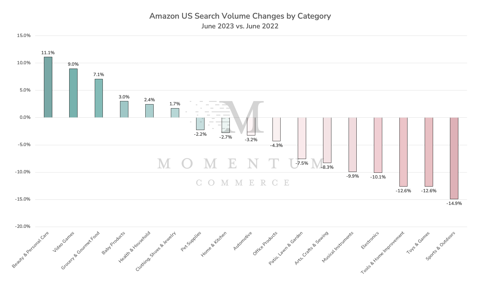 - The increases represent the first time either category has outpaced Amazon as a whole since Momentum Commerce began doing these analyses