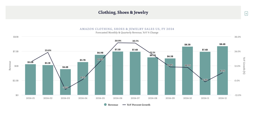 Amazon’s Clothing, Shoes & Jewelry Category Forecasted to Grow 12.4% YoY in 2024