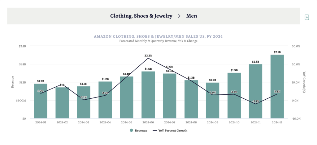 1. What is the projected growth for the Men’s Clothing, Shoes & Jewelry subcategory on Amazon US throughout 2024?