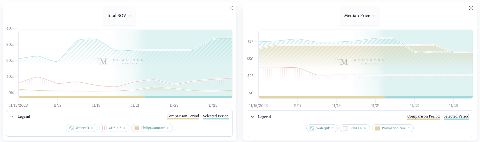 Waterpik already dominated this category on Amazon coming into the sale period and essentially doubled down on that position. Their increased paid SOV helped hold their advantages in the face of strong paid investment and price promotion activity from Coslus, Philips Sonicare, and others.