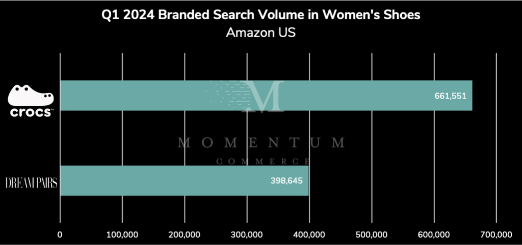 A few of these Chinese brands actually drove millions of branded searches over the Q1 period. Beyond category leaders like Anker, examples like CRZ Yoga are instructive in terms of how Chinese brands in hyper-competitive spaces are carving out meaningful levels of brand loyalty. In CRZ Yoga’s case, searches including their brand name happened nearly 2X as often in Q1 2024 as those for the viral shoe brand Hoka. This is likely in large part due to the popularity of the brand on TikTok and other similar platforms, with many of the videos explicitly mentioning Amazon as where they got CRZ Yoga attire.