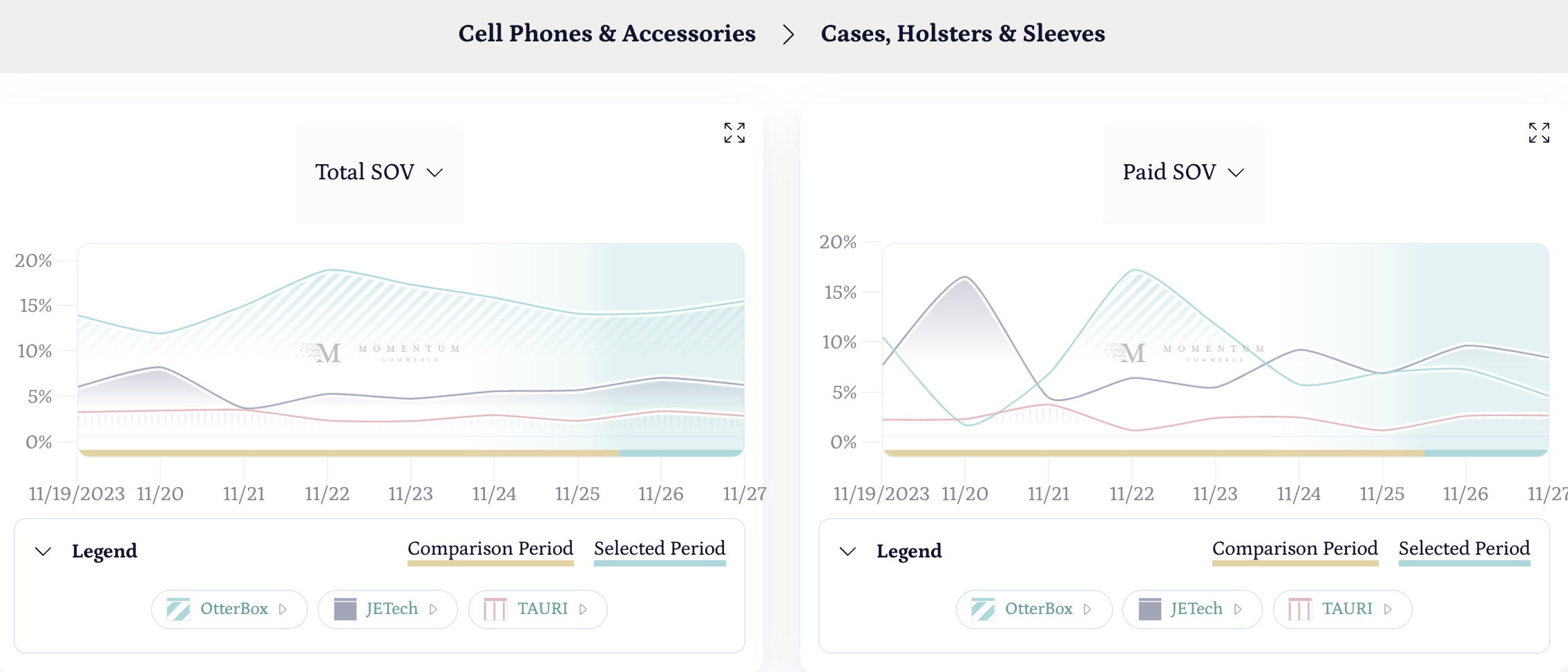 - OtterBox dominated the category by claiming 14.72% Total SOV for the given time period.