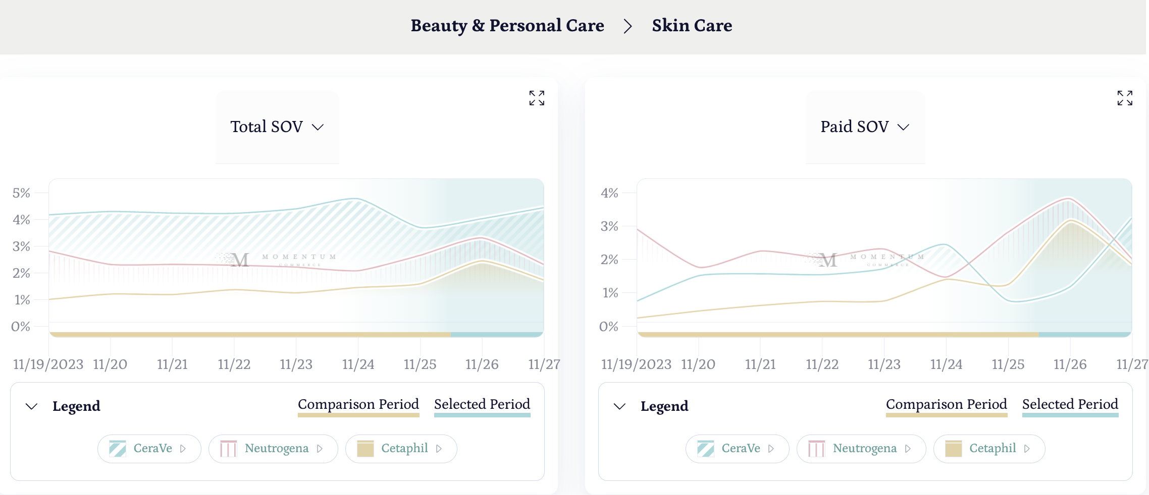 - Cetaphil increased Total SOV by 0.82% during the Cyber Monday period (the largest increase in the category for this time frame)