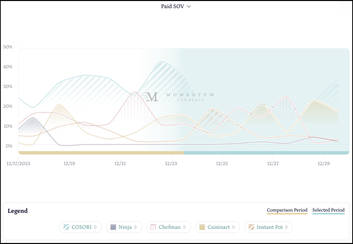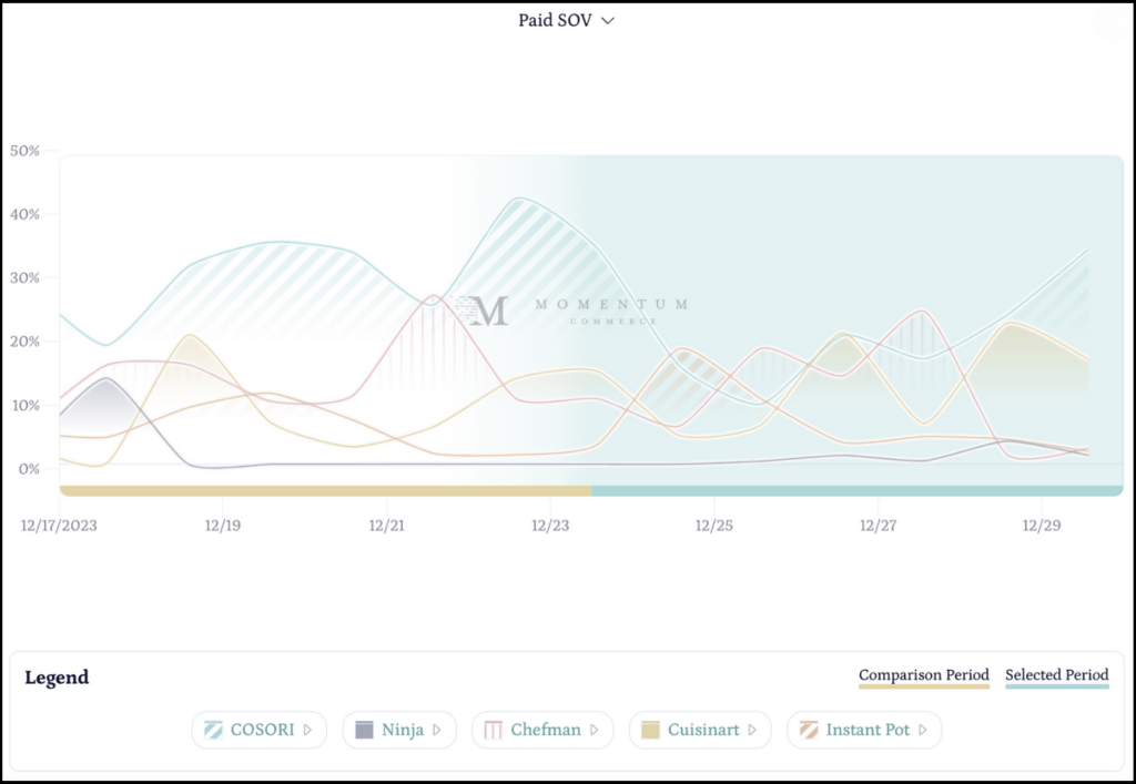 - It’s interesting to note that on December 23, 2023, COSORI held 42.5% of Paid SOV, and dropped to 9.6% just a few days later.