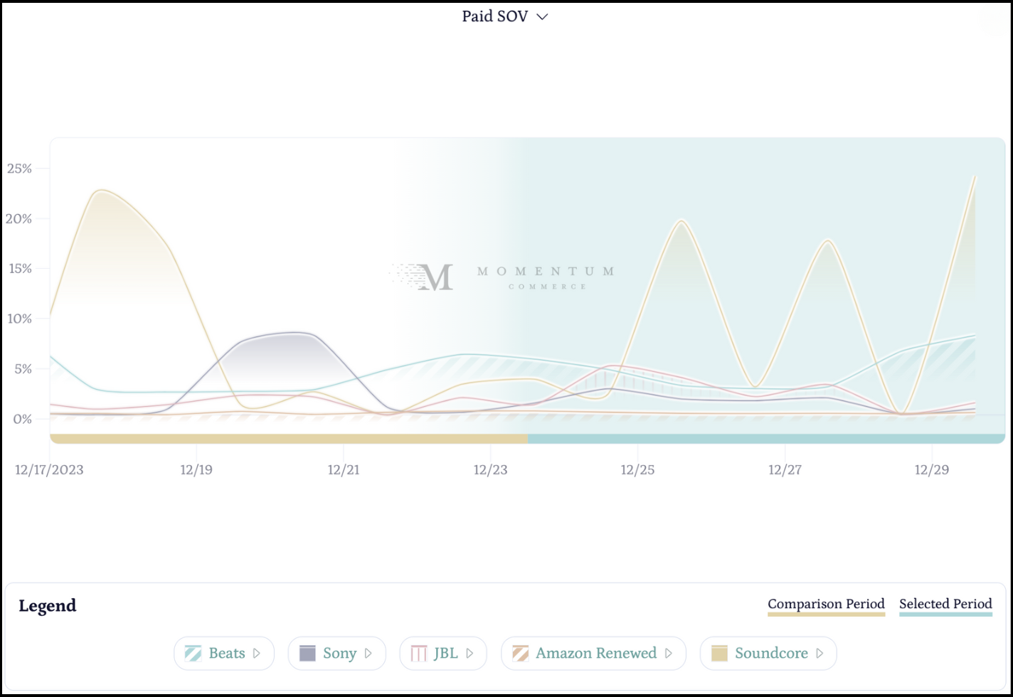 - While competition held rather steady in terms of Paid SOV, Soundcore upped their paid placements by 3.41% during the time frame and simultaneously slashed prices by 54.61%!