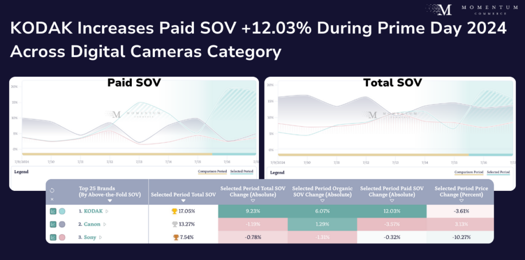 - KODAK increased paid ad placements by +12.03% during Prime Day, the largest of any brand in the subcategory