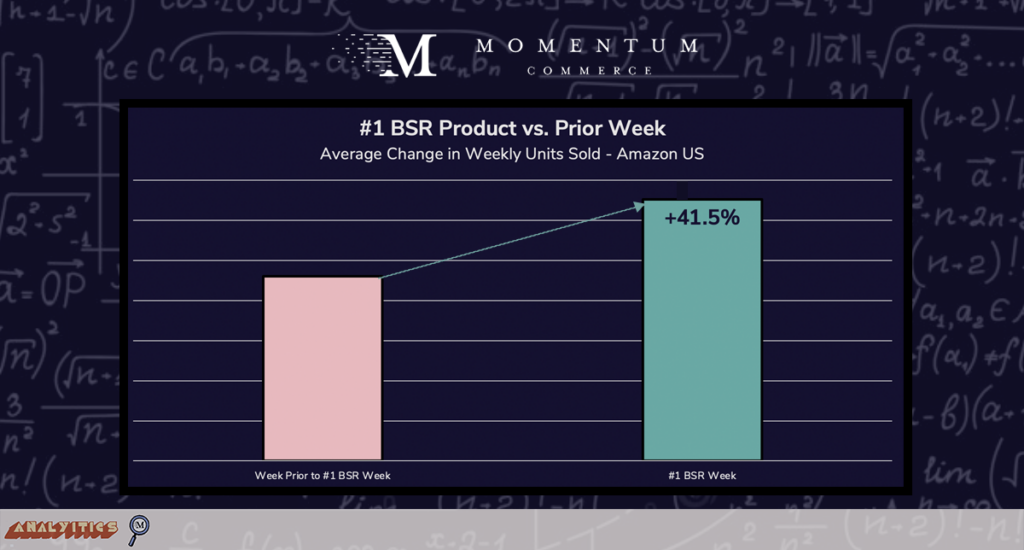 The analysis showed that ASINs that captured and maintained a #1 BSR for a whole week drove an average 41.5% more units sold per week vs. the week prior to reaching the #1 BSR.