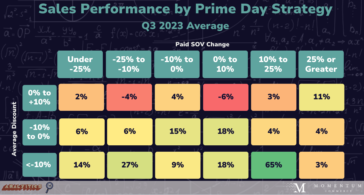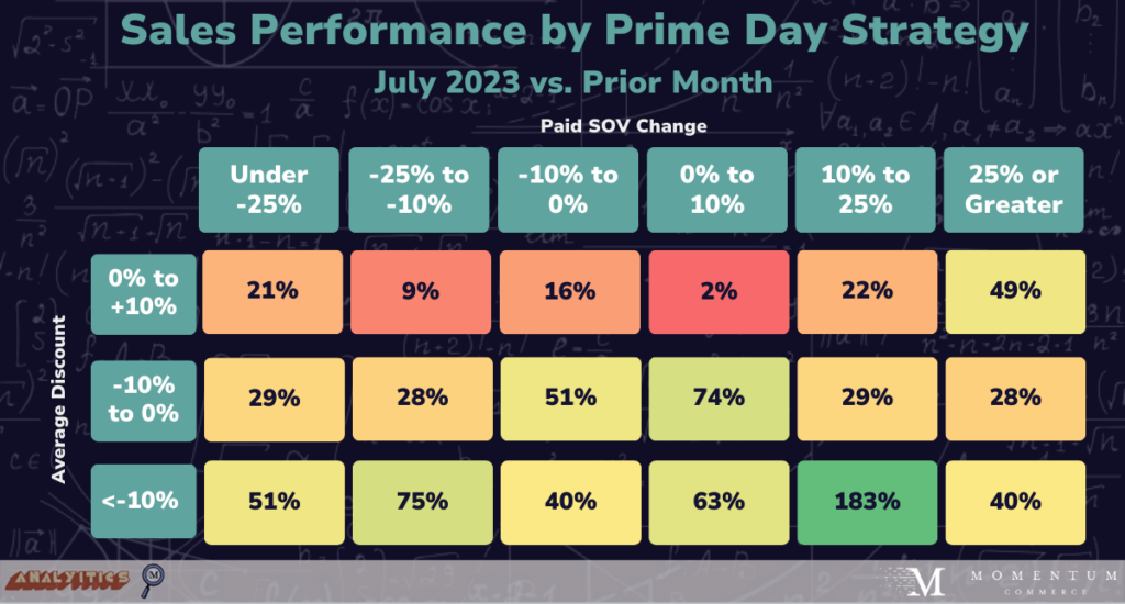 An analysis of thousands of brands shows that a mix of discounting and advertising during Prime Day is clearly the strategy associated with better outcomes during the month of the sale event.